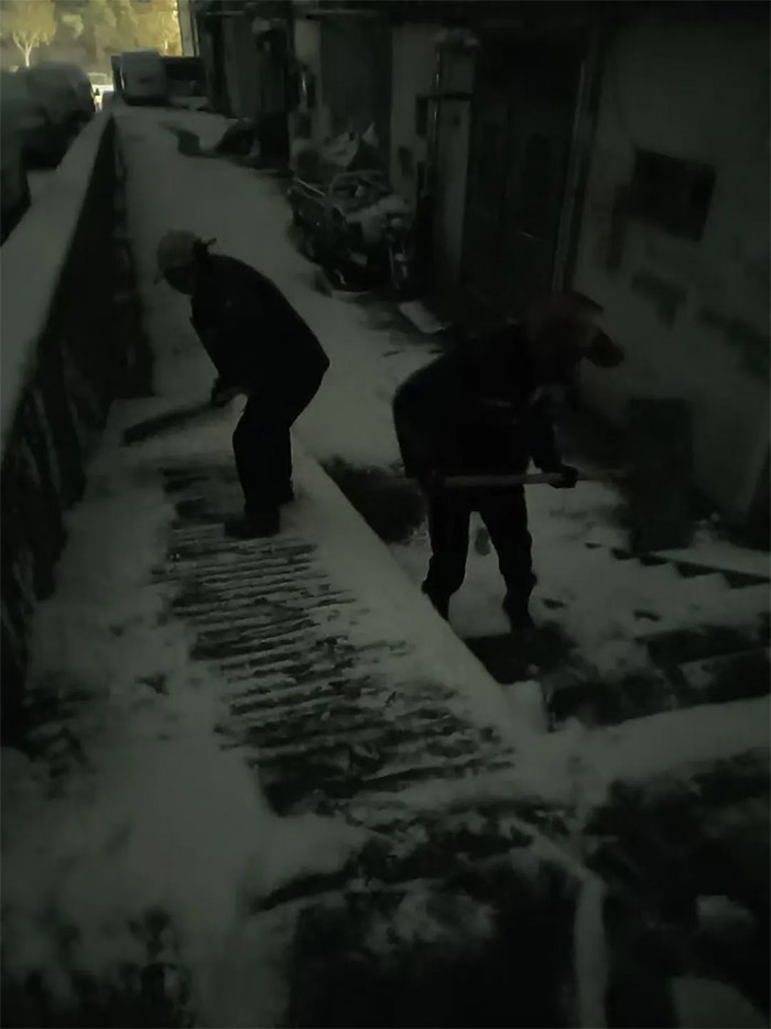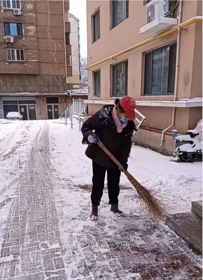 他們或拿著除雪鏟,或手持著掃把等工具,對主出入口、主干道上的積雪進行清理,確保道路通暢。他們用速度詮釋守護,用貼心詮釋暖心,業主家人們也紛紛為物業貼心、暖心的除雪行動點贊。
