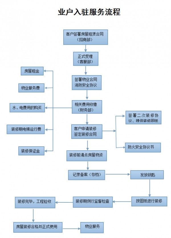 客服部:各類商戶入駐手續辦理;物業服務、咨詢、報修、投訴;