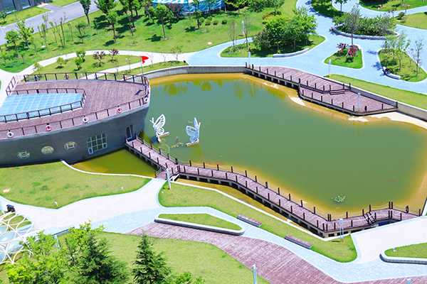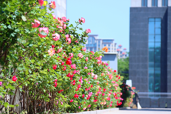 不僅僅是一個綠化的搭配,其實是山水林木、花草植被與人文體驗交融的一個休閑公園,這在煙臺是比較稀有的。在推進景觀帶建設過程中,園區(qū)巧妙利用了山形地貌和綠色植被,在保留原有景觀特色,依山傍水就勢布局建設。景觀帶引入的苗木種類十分豐富,有銀杏、櫻花、松柏、龍柏、黃楊、美人梅、國槐、海棠、月季等,綠樹紅花,灌木成簇,再加上依傍五卒山,整個形成了一個小的自然生態(tài)圈。