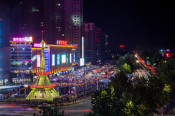 新都匯廣場西北側建有“埃菲爾鐵塔”大舞臺,南堯集團投資500萬元打造,按照巴黎埃菲爾鐵塔原樣1:10比例設計制作而成,塔身高達29米,相當于10層樓高,并配備燈光秀。“埃菲爾鐵塔”一經亮相,就吸引了大批市民前來觀賞拍照,仿佛帶人穿梭去法國巴黎,感受一場異域風情的浪漫感。底部舞臺部分面積約為400平米,與周邊休閑座椅、綠植呼應,構成1000平米的具有風格的景觀。有文藝演出的時候,這里就是社區文化百姓大舞臺,也是商品的展示平臺;平日閑暇時間也是居民娛樂休閑的一個非常好的去處。南堯集團專門圍繞“埃菲爾鐵塔”建設百姓大舞臺,形成了一套社區文化演出模式,為老百姓免費送上精神文化大餐。