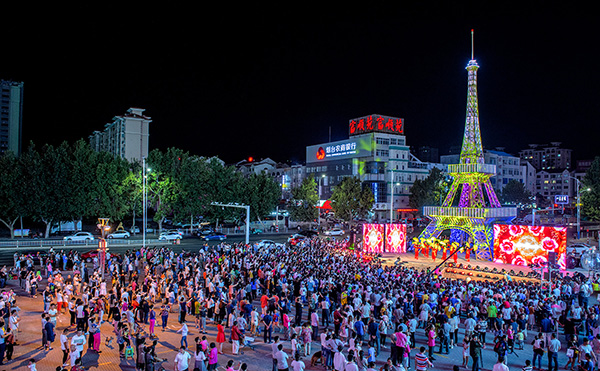新都匯廣場西北側建有“埃菲爾鐵塔”大舞臺,南堯集團投資500萬元打造,按照巴黎埃菲爾鐵塔原樣1:10比例設計制作而成,塔身高達29米,相當于10層樓高,并配備燈光秀。“埃菲爾鐵塔”一經亮相,就吸引了大批市民前來觀賞拍照,仿佛帶人穿梭去法國巴黎,感受一場異域風情的浪漫感。底部舞臺部分面積約為400平米,與周邊休閑座椅、綠植呼應,構成1000平米的具有風格的景觀。有文藝演出的時候,這里就是社區文化百姓大舞臺,也是商品的展示平臺;平日閑暇時間也是居民娛樂休閑的一個非常好的去處。南堯集團專門圍繞“埃菲爾鐵塔”建設百姓大舞臺,形成了一套社區文化演出模式,為老百姓免費送上精神文化大餐。